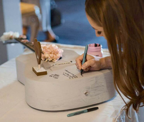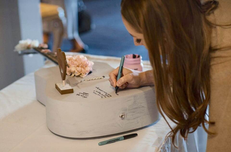 McKenzie and Stephanie were married on Sunday, September 23, 2018! Kimberley still gets choked up thinking about what an amazing couple they are. Their love is so deep it simply filled the room that day. The ballroom was decorated in Stephanie's favorite colors, so pretty! Everyone enjoyed an afternoon filled with a wonderful barbeque buffet, dancing and many laughs. They had great ideas to make their day even more special. Stephanie painted a guitar that family and friends were able to write as a keepsake. An adorable idea! As well as making their own cupcakes, table chart and treat bags, such a nice touch.